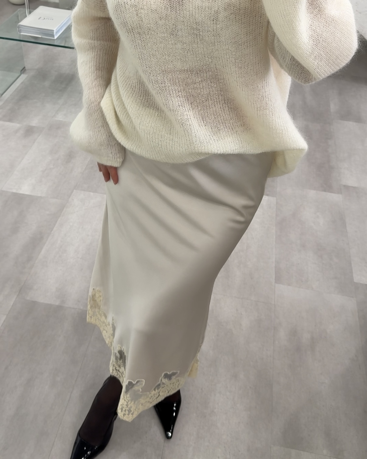 Юбка атласная с кружевом
